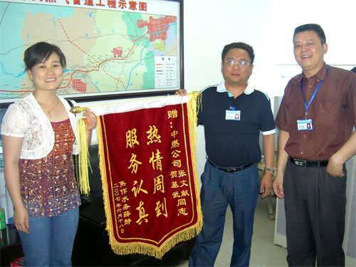 望著汗流浹背連水也顧不得喝一口的張文獻部長一行人,該用戶內(nèi)心充滿了感激之情。隨后,特制定了一面錦旗送到公司,以表達她內(nèi)心的感激之情。