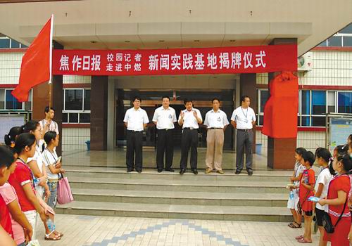 "7月12日,焦作日?qǐng)?bào)社校園記者新聞實(shí)踐基地在焦作中燃公司舉行揭牌儀式。這標(biāo)志著公司與媒體單位聯(lián)姻,為小記者們提供新聞實(shí)踐平臺(tái),同時(shí)將燃?xì)獍踩麄魃钊氲綄W(xué)生中間,燃?xì)獍踩珡膶W(xué)生抓起。小記者們可以來(lái)該公司進(jìn)行實(shí)地采訪,采寫新聞稿件。