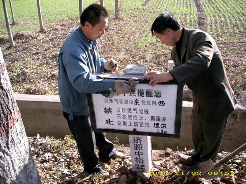 公司首先通過增設(shè)天然氣長輸管線警示樁,進一步做好了安全警示工作。至11月7日,燃氣輸配管理部的工作人員共行進60余公里,栽樁151根。在對警示樁進行精確定位的同時,工作人員還對管道深埋情況作出了標注。