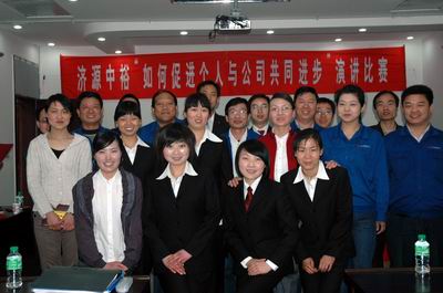 "濟(jì)源公司訊 4月11日下午,一場(chǎng)題為“如何促進(jìn)個(gè)人與公司共同進(jìn)步”的演講比賽在濟(jì)源中裕公司多功能教室內(nèi)成功上演。來(lái)自該公司各個(gè)部門(mén)的24名員工帶著飽滿(mǎn)的激情參與到了本次比賽當(dāng)中。