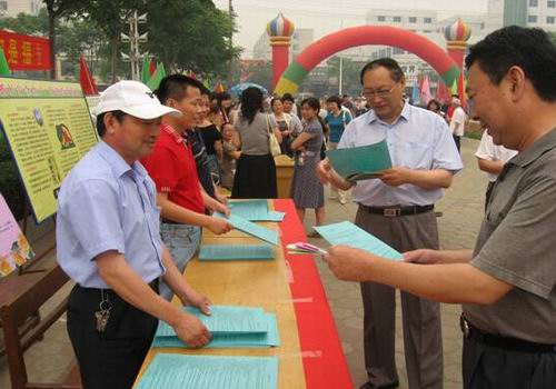 漯河市副市長劉鳳山、市人大副主任劉樹平在我咨詢臺前仔細(xì)閱讀安全用氣宣傳頁