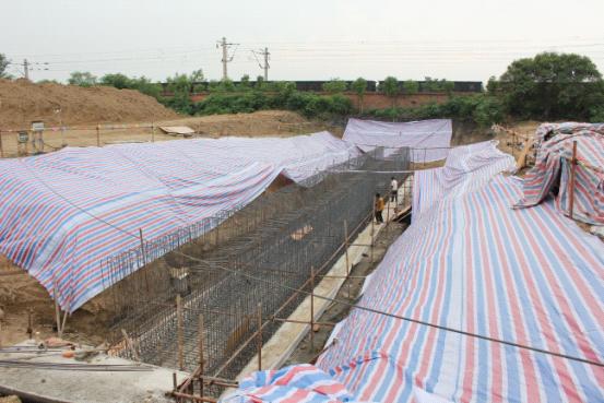 漯河市西氣東輸二線∮508高壓管線對京廣鐵路的穿越處位于漯河至西平段(鐵路里程為K823+295,管道里程K8+000)。由于京廣鐵路是貫通中國南北的重要交通干線,為在保障工程建設(shè)質(zhì)量的同時確保其行車安全,穿越工程擬通過建護涵的方式下穿京廣鐵路,與京廣鐵路正交。其中,護涵主筋規(guī)劃采用HRB335鋼筋制作成2*2米框架涵,采用頂進法施工作業(yè),兩端設(shè)D700mm檢查井,一側(cè)設(shè)DN100mm鍍鋅鋼管排氣管。目前正緊鑼密鼓地澆筑箱涵,全部工程計劃于7月底全部完工。