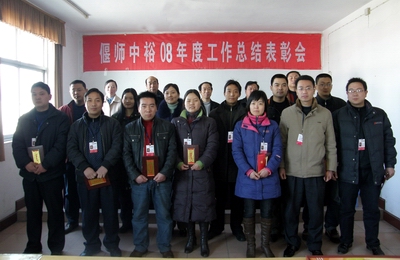 偃師公司訊 1月21日上午10時,偃師中裕2008年度工作總結表彰大會于其六樓會議室內(nèi)成功召開,偃師公司高管及全體員工參加了此次會議。