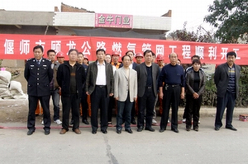 偃師公司訊 10月14日上午,偃師市顧龍公路燃?xì)廨斉涔芫W(wǎng)工程順利開(kāi)工建設(shè)。龐村鎮(zhèn)鎮(zhèn)長(zhǎng)郭海濤、副書(shū)記張俊龍、副鎮(zhèn)長(zhǎng)張冠軍,承建單位偃師中裕燃?xì)庥邢薰究偨?jīng)理段區(qū)高及施工單位負(fù)責(zé)人參加了開(kāi)工儀式。至此,顧龍公路管道燃?xì)夤こ踢M(jìn)入了實(shí)質(zhì)性的進(jìn)展階段。
