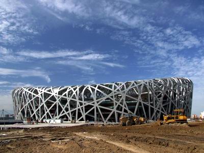 國(guó)家體育場(chǎng)的“鳥(niǎo)巢”是由一系列輻射式門(mén)式鋼桁架?chē)@碗狀坐席區(qū)旋轉(zhuǎn)而成,結(jié)構(gòu)科學(xué)簡(jiǎn)潔,設(shè)計(jì)新穎獨(dú)特,為國(guó)際上極富特色的巨型建筑。