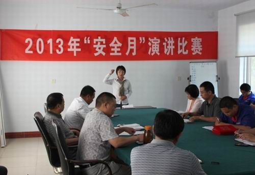 永城公司訊 6月是全國安全月,為了深入開展安全生產(chǎn)宣傳,營造濃厚的安全文化氛圍,提高全體員工的安全生產(chǎn)意識,預防和減少安全事故的發(fā)生。13日下午,一場以“安全、責任、幸?!睘橹黝}的安全月演講比賽在永城公司二樓會議室舉行。永城公司總經(jīng)理郭穎靈及公司領(lǐng)導班子成員組成評委會對比賽進行了評判。