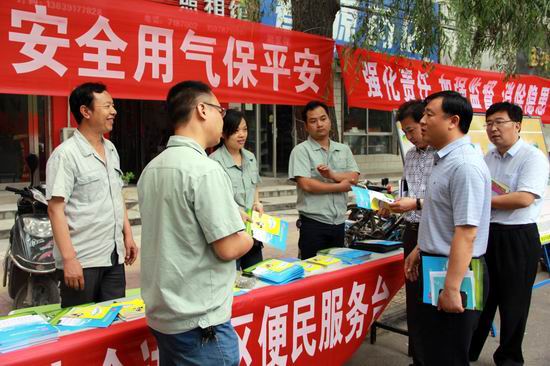 焦作公司訊 2014年6月16日,修武中裕燃?xì)獍l(fā)展有限公司組織員工走上街頭,針對安全用氣知識對廣大居民提供宣傳咨詢服務(wù)。通過設(shè)立宣傳點、懸掛橫幅、擺放展板,向過往群眾發(fā)放宣傳資料,接受用戶用氣安全咨詢等方式加強(qiáng)燃?xì)獍踩麄?。期間,修武縣吳利年副縣長來到宣傳點針對如何安全用氣進(jìn)行了詳細(xì)的咨詢和提問,對工作人員的回答予以了高度評價,同時提出了盡快推行居民灶具管道硬連接以杜絕安全隱患等要求。活動為廣大市民進(jìn)一步了解了如何安全使用燃?xì)饧叭細(xì)庑孤逗笕绾翁幹玫劝踩WR、提高燃?xì)馐褂冒踩庾R和操作技能提供了幫助。