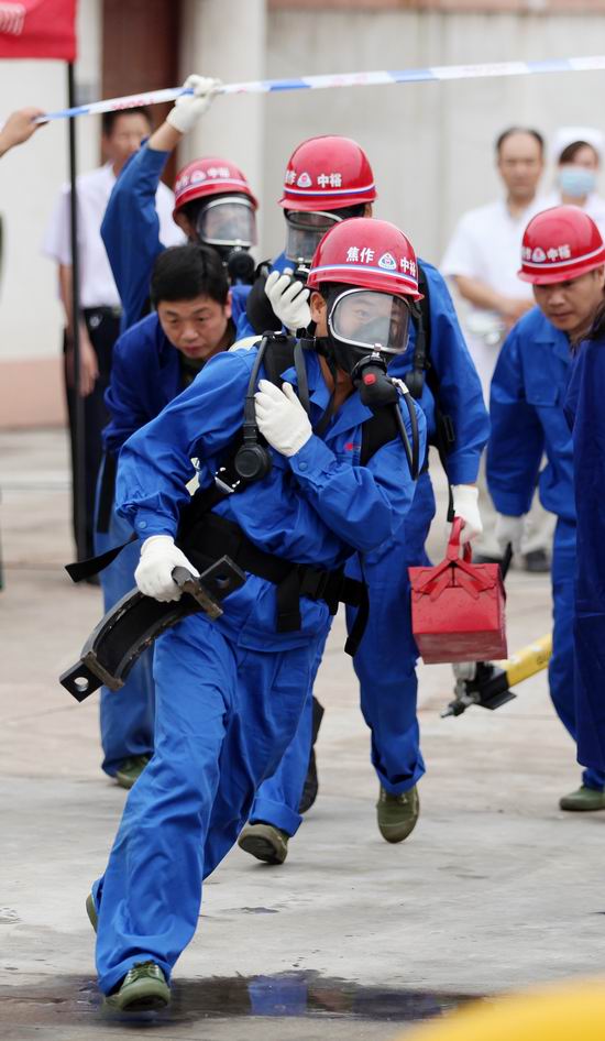 搶險(xiǎn)人員穿戴應(yīng)急裝備