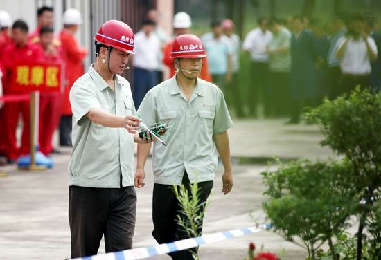 值班人員對(duì)泄漏現(xiàn)場(chǎng)進(jìn)行檢測(cè)