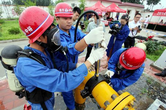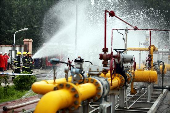 20日上午9:30,焦作公司博愛(ài)首站當(dāng)班巡檢人員發(fā)現(xiàn)工藝區(qū)Ф219燃?xì)夤艿廊細(xì)庑孤⒓聪蚴渍井?dāng)班站長(zhǎng)報(bào)告。當(dāng)班站長(zhǎng)接到報(bào)告后立即前往現(xiàn)場(chǎng)察看,確定燃?xì)庑孤┖罅⒓聪虿块T(mén)領(lǐng)導(dǎo)報(bào)告。天然氣輸配部部長(zhǎng)高東林接到報(bào)警后,立即下達(dá)搶險(xiǎn)指令,啟動(dòng)應(yīng)急程序,公司應(yīng)急搶險(xiǎn)隊(duì)迅速趕往現(xiàn)場(chǎng)救援。相關(guān)站場(chǎng)接到通知后立即做好降壓運(yùn)行。博愛(ài)縣政府接到報(bào)警后,立即啟動(dòng)博愛(ài)縣應(yīng)急救援預(yù)案,縣應(yīng)急辦、安監(jiān)、公安、消防、衛(wèi)生、環(huán)保等部門(mén)相繼到達(dá)事故現(xiàn)場(chǎng),消防人員立即對(duì)燃?xì)庑孤┕艿绹娚湎浪苊怆U(xiǎn)情擴(kuò)大??h安監(jiān)局聯(lián)系專(zhuān)家組人員趕到現(xiàn)場(chǎng),迅速了解事故情況,共同制定救援方案,最后決定采用打卡注膠的方式處理漏氣,經(jīng)過(guò)近20分鐘的緊張救援,搶險(xiǎn)人員成功將險(xiǎn)情排除,燃?xì)夤艿佬孤┦鹿实玫搅思皶r(shí)有效的控制,用氣恢復(fù)正常。
