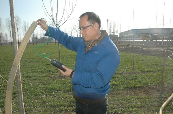 在東二環(huán)次高壓管道置換現(xiàn)場(chǎng)工作人員檢測(cè)來(lái)氣成分