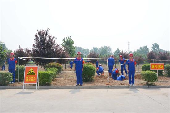 演練中,搶險組快速檢測現(xiàn)場燃?xì)鉂舛?,確認(rèn)漏氣點及泄漏警戒范圍,組織搶修;客服組通過張貼停氣通知等方式,第一時間告知用戶;技術(shù)組根據(jù)工程資料,研制搶險技術(shù)方案;警戒組根據(jù)泄漏測量情況,在泄漏周邊進(jìn)行警戒;安全保障組認(rèn)真做好現(xiàn)場監(jiān)護(hù);協(xié)調(diào)聯(lián)絡(luò)組積極與110聯(lián)系,做好外圍協(xié)調(diào)工作……經(jīng)過約30分鐘的聯(lián)合作戰(zhàn),搶險工作完成,并恢復(fù)供氣。