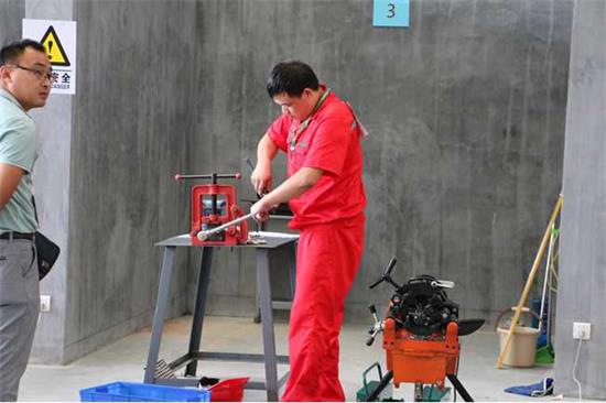期間,來自全省17個地市的68名參賽選手分調壓工、安裝維修工2個賽項進行了角逐,考核成績由理論和實踐兩部分組成。調壓工實操要求參賽選手在70分鐘的限時內對整臺調壓器進行檢查,并完成對主調器切斷閥的拆裝保養(yǎng)維護及組裝調試、工作原理圖繪制等操作;安裝維修工實操要求參賽選手在100分鐘的限時內按照給定的墻面圖,設計燃氣管道安裝圖,提出材料表,完成管道下料組裝、壓力試驗等操作。