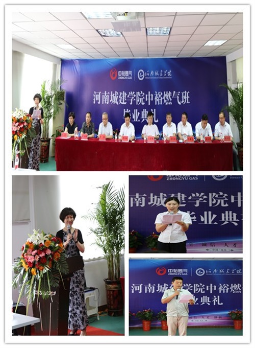 畢業(yè)典禮上,河南城建學(xué)院能源學(xué)院馬良濤院長公布了中裕燃?xì)獍嗍讓卯厴I(yè)學(xué)員名單,校方和公司領(lǐng)導(dǎo)為畢業(yè)生代表頒發(fā)了畢業(yè)證書。